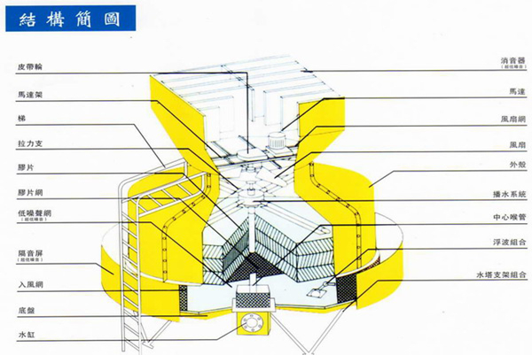 2、按熱水和空氣的接觸方式分有濕式冷卻塔、干式冷卻塔、干濕式冷卻塔。