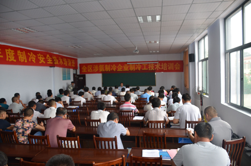 2015年7月6號,由煙臺冰輪、臨沂瑞華、河?xùn)|區(qū)安監(jiān)局共同支持舉辦的氨制冷安全技術(shù)培訓(xùn)班在河?xùn)|區(qū)農(nóng)民工培訓(xùn)中心成功開課。此次培訓(xùn)為河?xùn)|區(qū)氨制冷企業(yè)制冷工作人員的集體學(xué)習(xí),培訓(xùn)主題為:學(xué)習(xí)涉氨制冷企業(yè)設(shè)備操作維修、安全隱患的分類評估。