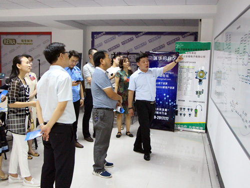 曹文棟等一行人先后來到瑞華制冷運營中心、產(chǎn)品展示廳、會議室進(jìn)行實地調(diào)研。瑞華制冷總經(jīng)理張瑞峰詳細(xì)為領(lǐng)導(dǎo)們闡述了瑞華制冷目前的運營方式;通過組隊的方式將每一天的銷售情況板上大屏幕,以此鞭策和鼓勵每一位銷售人員的銷售熱情。在產(chǎn)品展示廳,技術(shù)總監(jiān)張玉峰詳細(xì)為領(lǐng)導(dǎo)們介紹了由瑞華制冷自主開發(fā)的ERP訂單系統(tǒng),得到了各位領(lǐng)導(dǎo)的一致認(rèn)可!