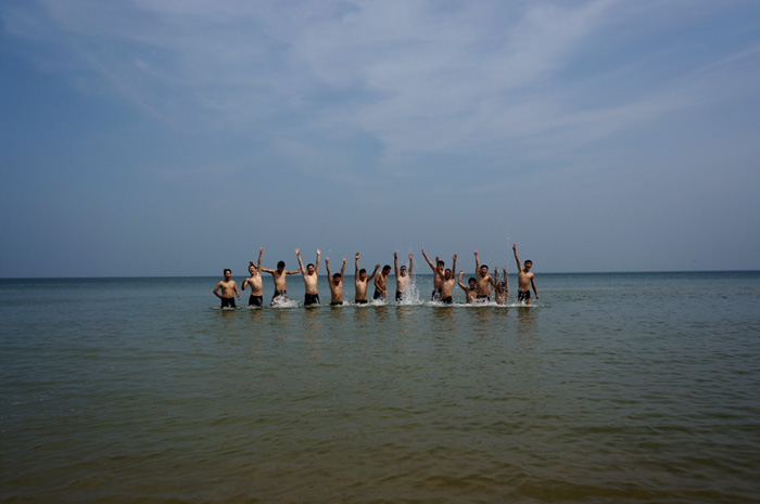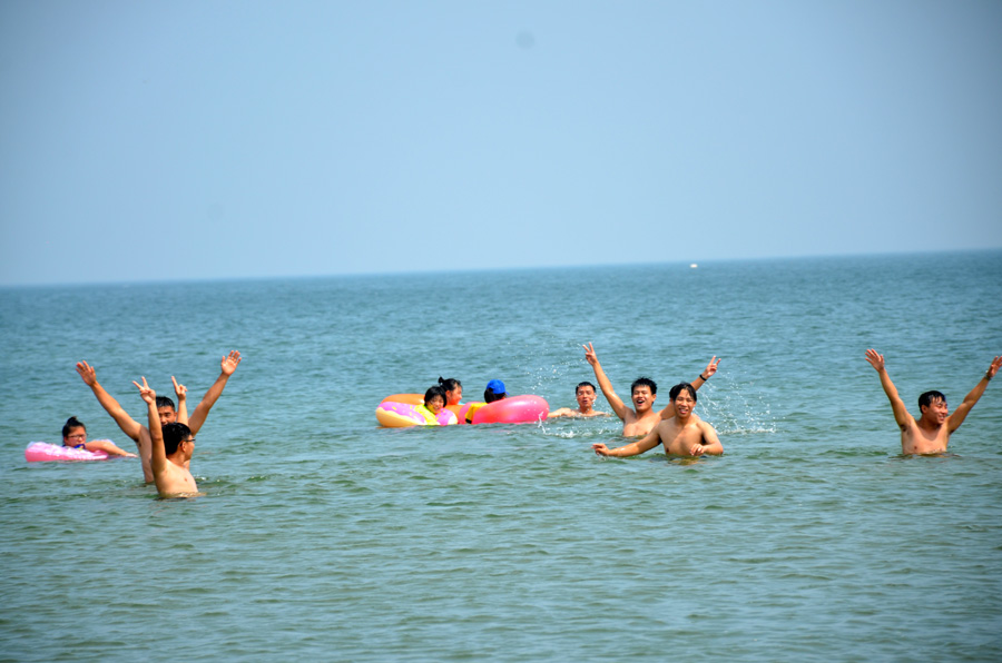 晚上我們下榻在海邊的輔特戴斯酒店,處于安全考慮,當(dāng)晚我們酒酣耳熱之后并沒有外出活動。而是在第二天才下海,盡情的玩耍了一番。下午驅(qū)車前往青島,先后來到五四廣場、石老人、棧橋等景區(qū)。接下來我們就通過一組組的照片來欣賞一下我們?nèi)鹑A人的風(fēng)姿吧!
