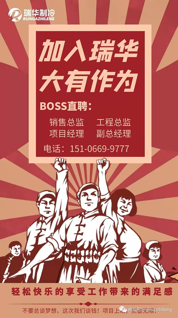 隨著制冷行業(yè)的不斷發(fā)展,瑞華制冷也取得了進步。先后成立了銷售部、倉儲部、采購部、財務部、行政人事部、客服部、工程部、維修部、生產部等,逐漸完善公司架構,提升自身優(yōu)勢,增加市場競爭力。并且為員工制定清晰等晉升機制,制定學習基金學習計劃,不斷組織豐富的活動,每年組織多次集體旅游,還為員工提供無息貸款等政策。如果你想找份工作或換個行業(yè),歡迎加入瑞華制冷大家庭。