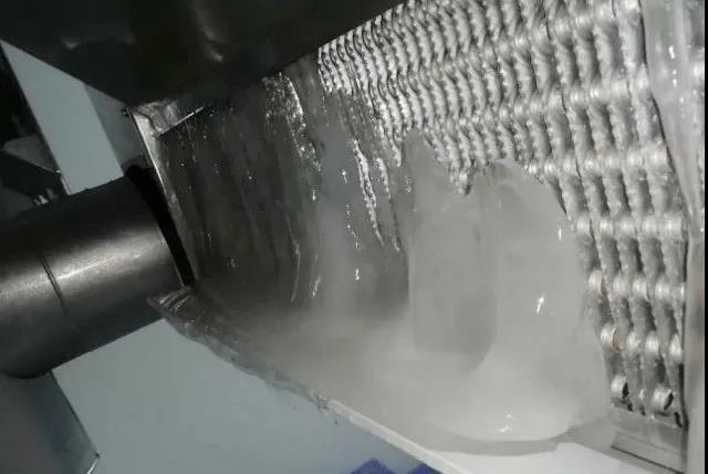 9、除霜不凈,由于除霜時間不夠,加上除霜復(fù)位探頭位置不合理,導(dǎo)致蒸發(fā)器化霜不凈時就開機運轉(zhuǎn),蒸發(fā)器局部霜層經(jīng)過多個循環(huán)后結(jié)成冰狀并且積累變大。