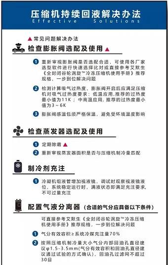 當壓縮機出現(xiàn)了上述癥狀則需立刻進行測查,確認持續(xù)回液病癥: